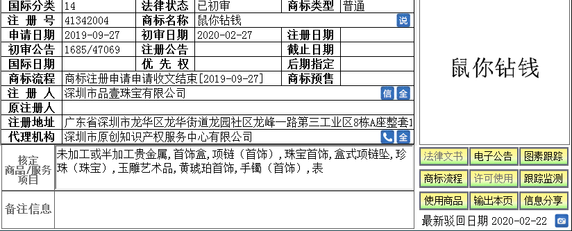 随着2020年的到来,“鼠”这一字成为了注册商标的首选之字。
