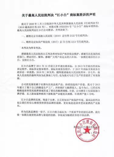 “江小白”商标争夺战 而“江小白”这个商标最早是2011年12月19日由成都格尚广告有限责任公司(下称格尚公司)申请注册,当时的商标编号为第10325554号,2013年2月21日该商标被核准注册。2012年12月6日 。商标局核准该商标转让给新蓝图公司。2016年6月6日 ,该商标又转让给江小白酒业。 而“江小白”商标纠纷则爆发于2013年,当年3月江津酒厂”与新蓝图公司经协商终止合作。但在终止合作后,江津酒厂对新蓝图公司及江小白公司申请的“江小白"系列商标不断提起商标异议、异议复审。 2016年,经江津酒厂申请,原国家工商行政管理总局商标评审委员会作出裁定,宣告“江小白”商标无效。随后,江小白公司不服,提起上诉。在2017年的一审中江小白公司获胜;但在随后到来的2018年审中江小白公司又败诉,直到此次的最高人民法院再审。最高院的终审判决显示,撤销2018年的二审判决,维持审判决,即“江小白”商标属于江小白公司。 争议核心为是否违反“2001年商标法第15条规定" 一个看似简单的高标归属问题为何争议多年 ,据了解,在该案中主要争议焦点在于:第10325554号“江小白”的申请注册是否违反2001年商标法第十五条规定。 资料显示,2001年《商标法》第十五条规定为:“末经授权,代理人或者代表人以自己的名义将被代理人或者被代表人的商标进行注册,被代理人或者被代表人提出异议的,不予注册并禁止使用”。 而在该案中,江津酒厂主张,新蓝图公司是其经销商,新蓝图公司是为其设计诉争商标,其在先使用诉争商标。因此,诉争商标的申请注册违反了上述规定。 最终最高院的终审判决认为,在诉争商标申请日即2011年12月19日申请注册前,第10325554号“江小白”商标并非江津酒厂的商标,根据定制产品销售合同津酒厂对定制产品除其注册商标“几江”外的产品概念、广告用语等并不享有知识产权。新蓝图公司对诉争商标的申请注册并末侵害江津酒厂的合法权益,未违反1年商标法第15条规定。 江小白”商标案尽管得到圆满解决,但对于江小白公司而言,未来如何构建品牌保护体系,巩固和完善品牌知识产权体系,将极大考验企业运营团队的智慧。与此同时,这一事件也为相关企业的商标注册管理工作提出警示,接下来或将进一步推动白酒这一传统产业对于知识产权的重视程度。 最终法院判定“江小白”商标属于江小白公司。近年来,以傍名牌为目的的恶意申请和为转让牟利而大星囤积商标等行为时有发生,一些知名品牌或人物纷纷“中招”。11月1日,修改后的商标法正式施行,明确将恶意侵犯商标专用权的赔偿数额由3倍以下提高到5倍以下,将法定赔偿额上限从300万元提高到500万元。此次