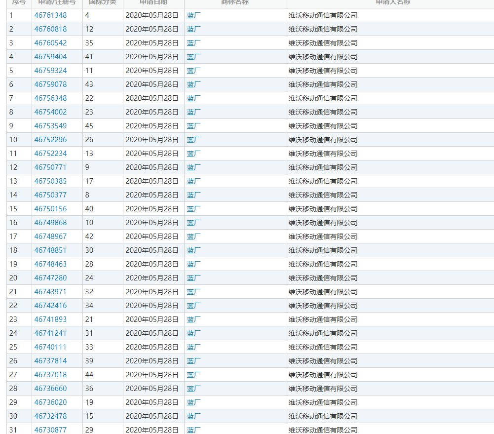 商标侵权案例:“米家”商标案二审部分改判!赔偿金额由1200万降至310万 !早在2019年8月,vivo关联公司维沃移动通信有限公司就已注册“蓝厂”商标,国际分类为“通讯服务”、“网站服务”等,商标状态为“已注册”。另外,该公司还于今年5月还申请注册了数十条“蓝厂”商标,涉及餐饮住宿、日化用品、金融物管等多个国际分类。