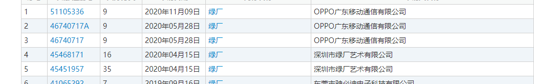 Supreme被VF集团以21亿美元天价收购!它曾卷入这些商标纠纷……因品牌LOGO颜色为绿色,所以OPPO在手机圈又被称为绿厂,而vivo也因为颜色,被称为 “蓝厂”。 天眼查App显示,OPPO关联公司广东移动通信有限公司已于11月9日申请注册“绿厂”商标,该商标国际分类为“科学仪器”,商标状态为“商标申请中”。