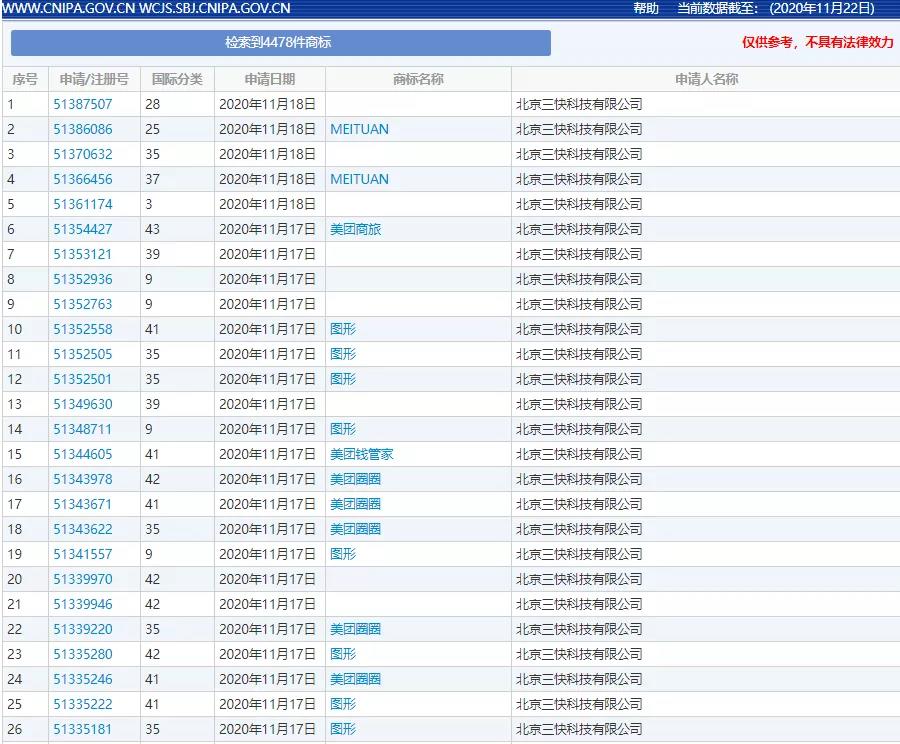 拼多多注册“拼夕夕”,自己山寨自己为哪般?!在商标保护方面,截至目前,美团网的运营方三快公司名下共有四千多件商标,包括“美团”、“美团网”、“美团点评”、“MEITUAN” 等商标,涵括多个类别,且大部分已注册成功。但是,依然不能阻止傍名牌的商标申请;